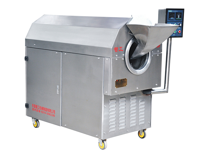 全自动炒花生机采用电磁加热智能控温设计 无需人工看管 该机一锅可炒制花生果28左右 炒制花生米一锅60斤左右 是新型的全自动花生炒货机
